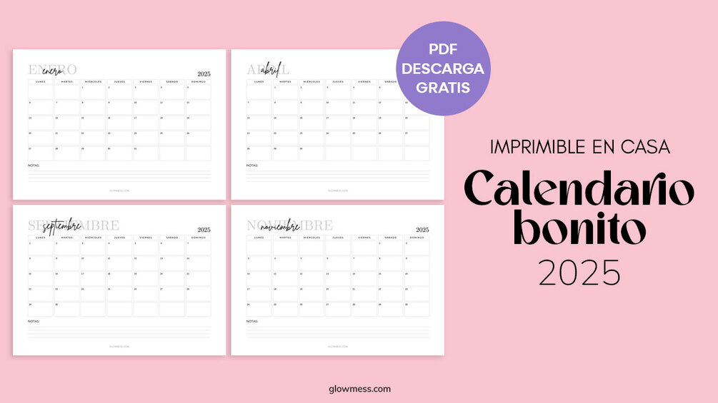 Calendario Bonito y Femenino | Calendarios 2025 para Imprimir | Planificador Mensual PDF Gratis