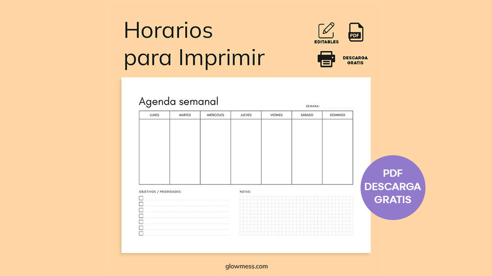 ¡Descarga y edita este práctico Horario Imprimible y organiza tus clases, actividades y la semana completa de manera fácil y divertida! 🗓️